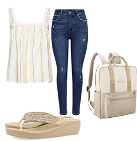 Un look relajado y práctico: colores neutros, prendas livianas y accesorios cómodos. Ideal para días tranquilos y llenos de movimiento.
